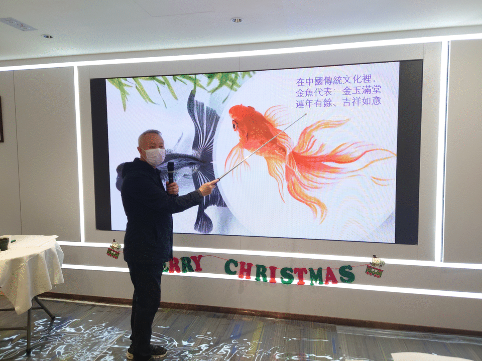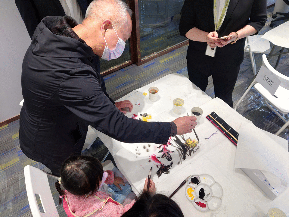 國家高級美術師仇振霖老師帶領參加者體驗水墨意境,領略國畫風采。金魚作為國畫裡經典的創作題材,體態優美,色彩絢麗,是鮮活的藝術品。而在中國傳統文化裡,金魚亦有金玉滿堂、連年有餘、吉祥如意的含義。