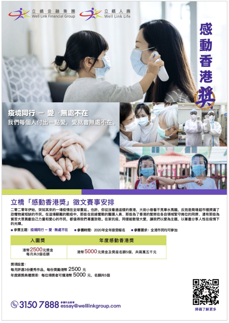 「疫境同行 – 愛 ·無處不在」(參賽主題將定期更新,詳情請留意立橋金融集團官方網站)。