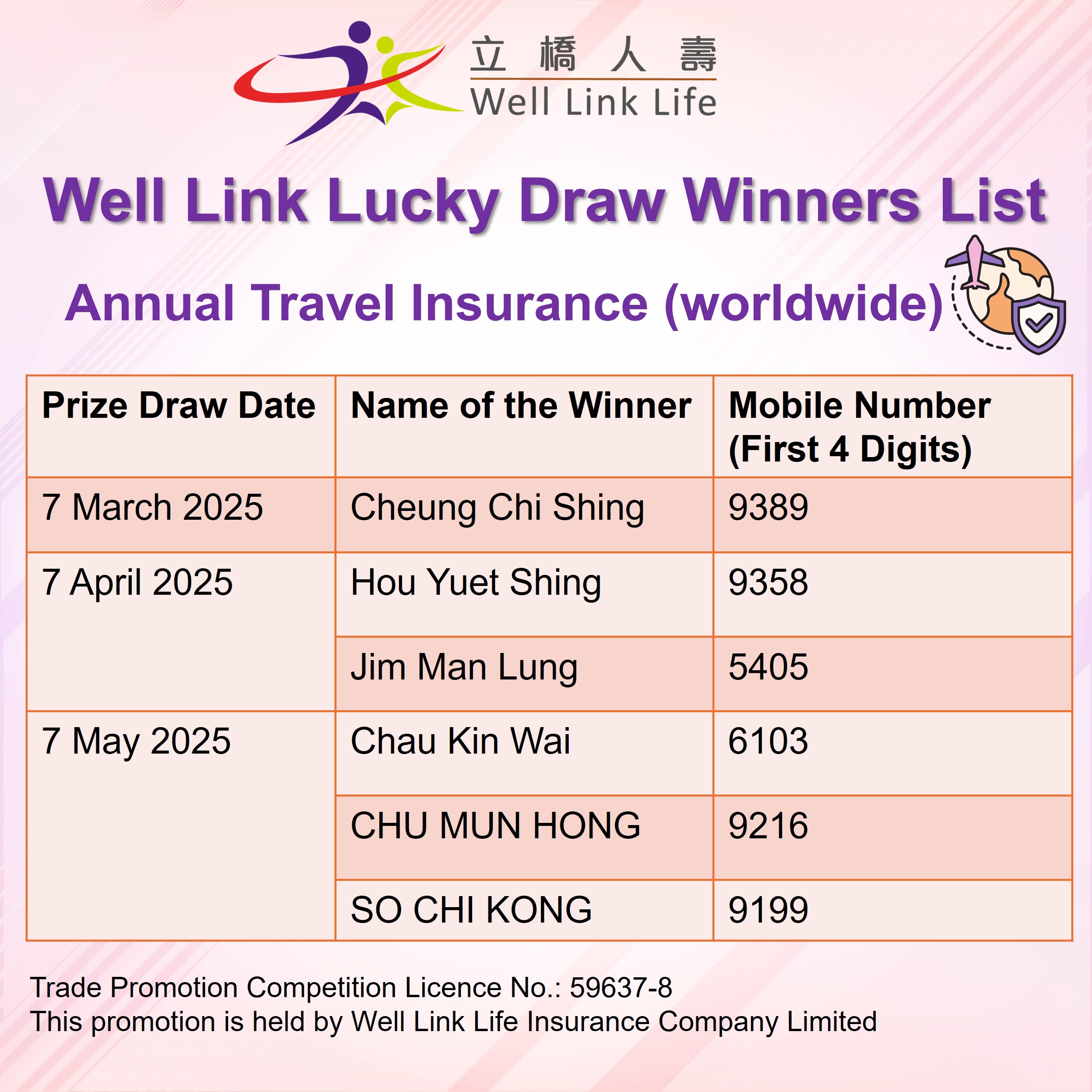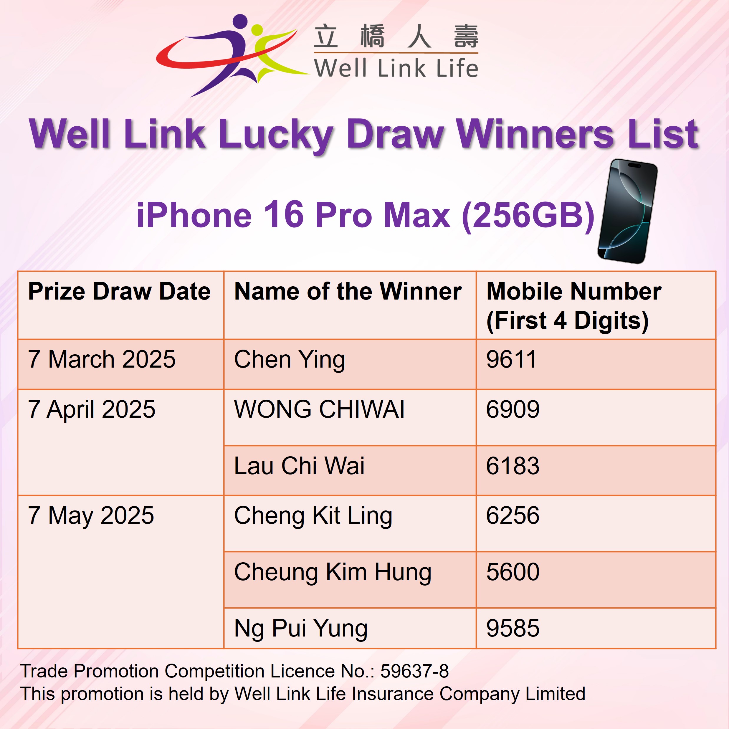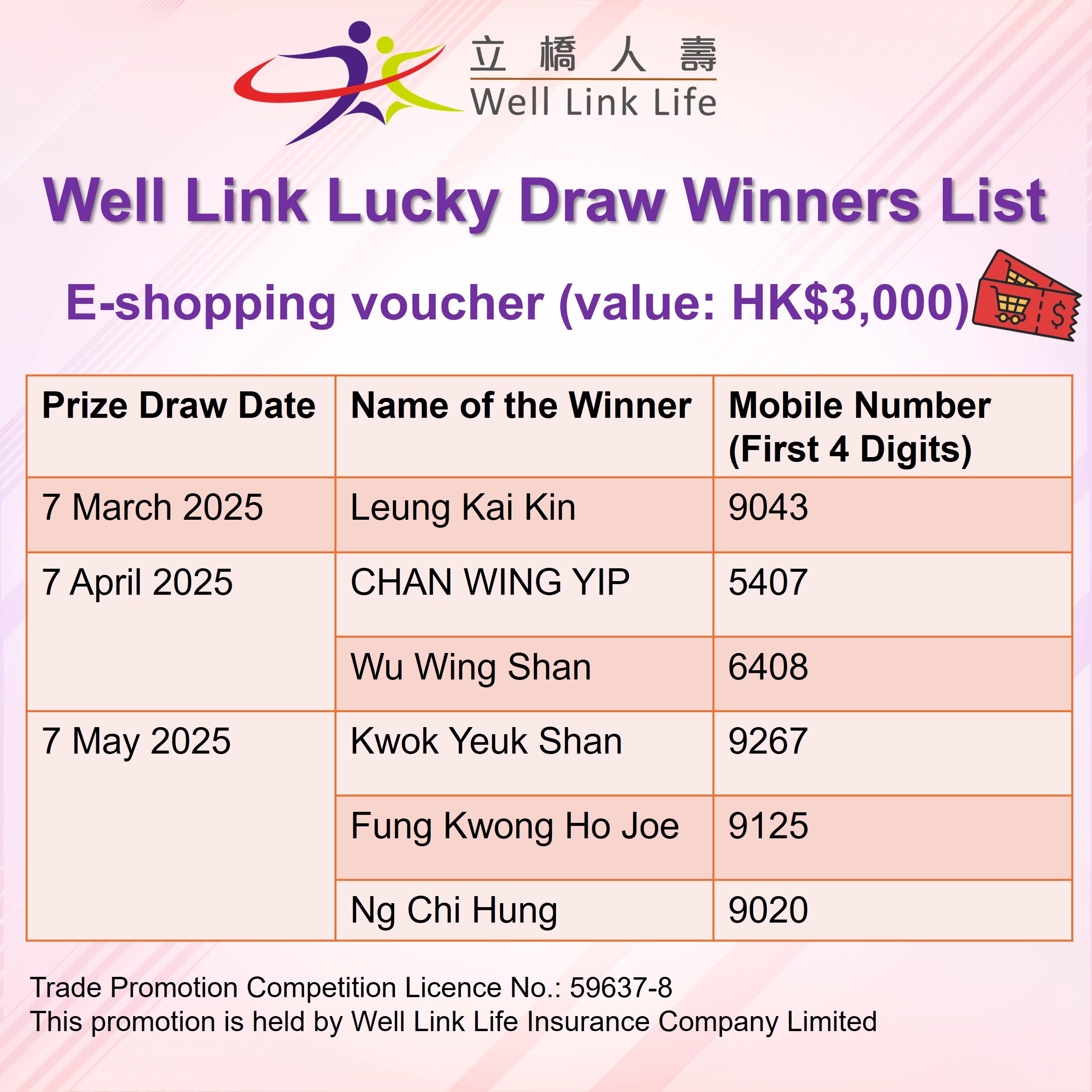 All winners will be notified individually to the gift redemption arrangement. Please contact Well Link Life for enquiries.